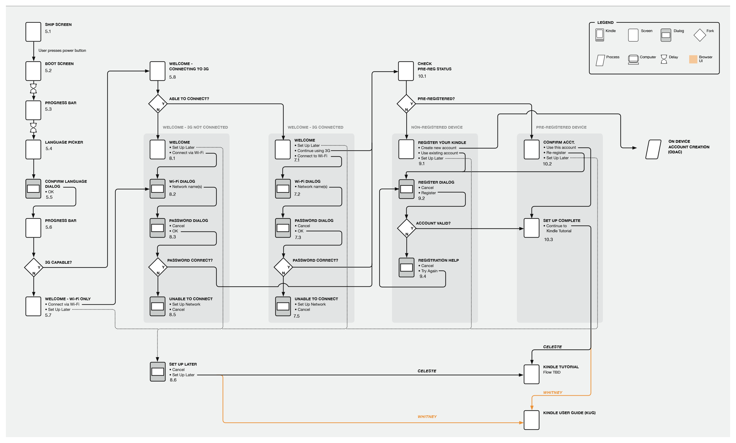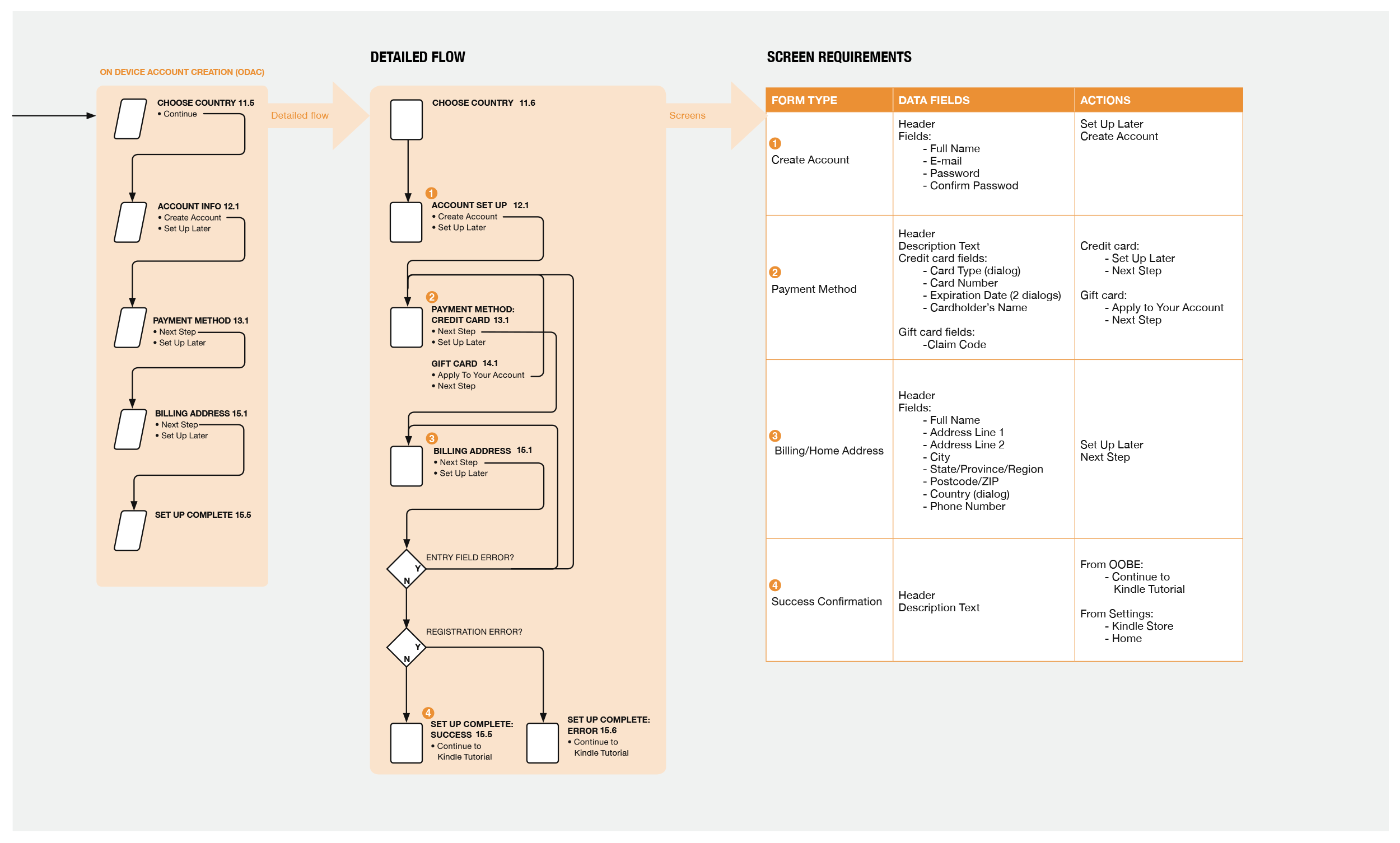 The Kindle OOBE “happy path” requirements described a simple, error-free experience which assumed a successful data network log on. There were no details about on-device account creation (ODAC).