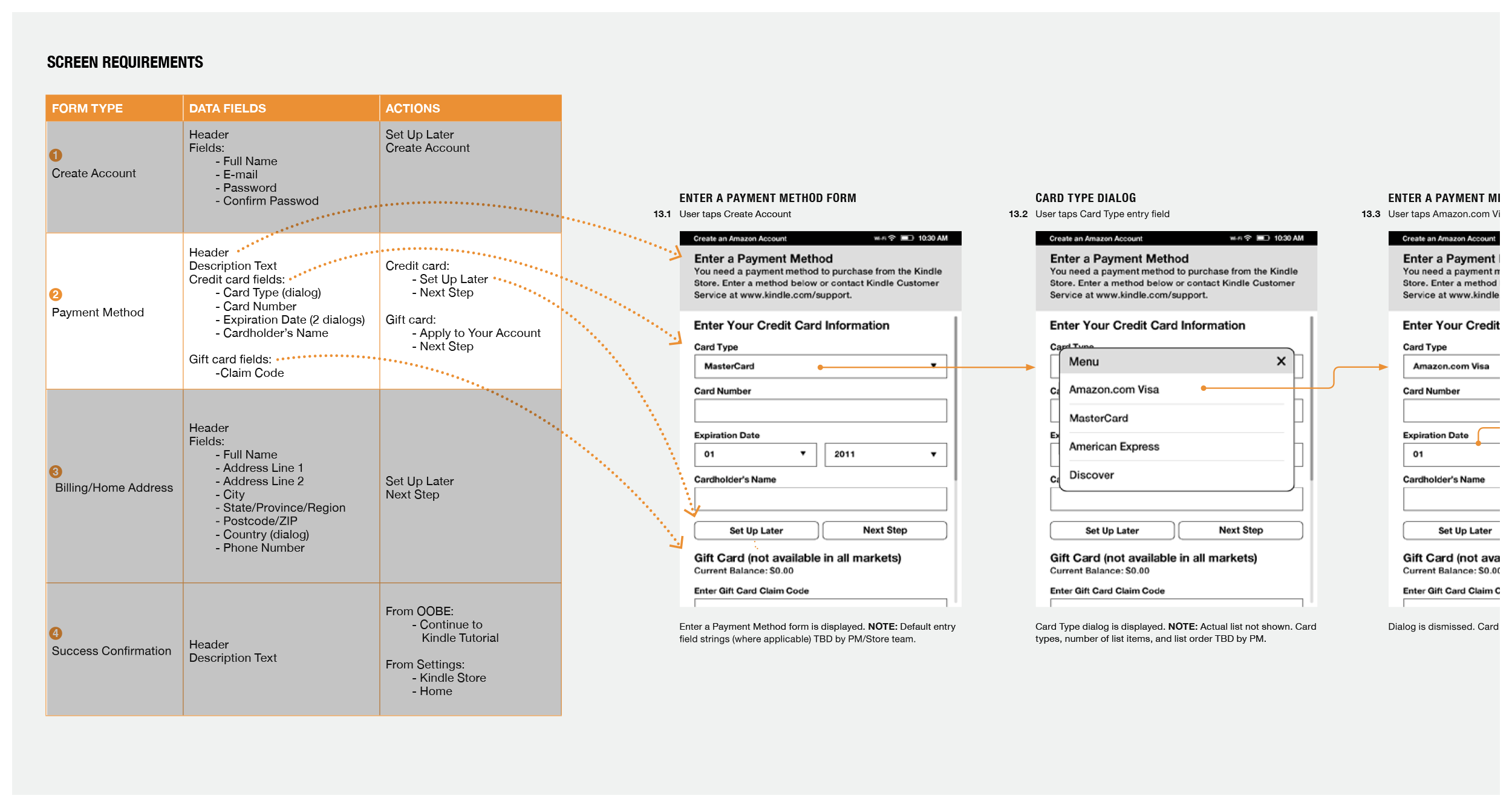 Thanks to the detailed screen requirements, developers following the Kindle UX design system could almost create final screens themselves. Design provided explanatory content, field labels, button names, and the like.